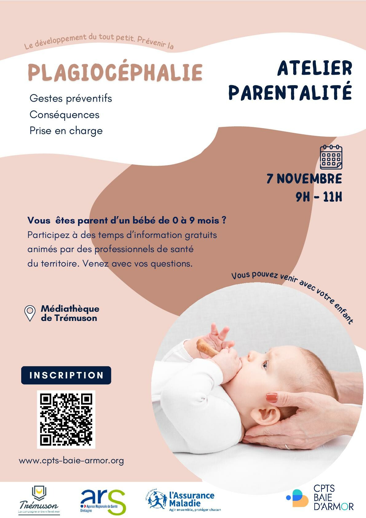 Le vendredi 7 novembre, de 9 h à 11 h à la médiathèque de Trémuson, les participants aborderont « le développement du tout-petit : prévenir la plagiocéphalie ».